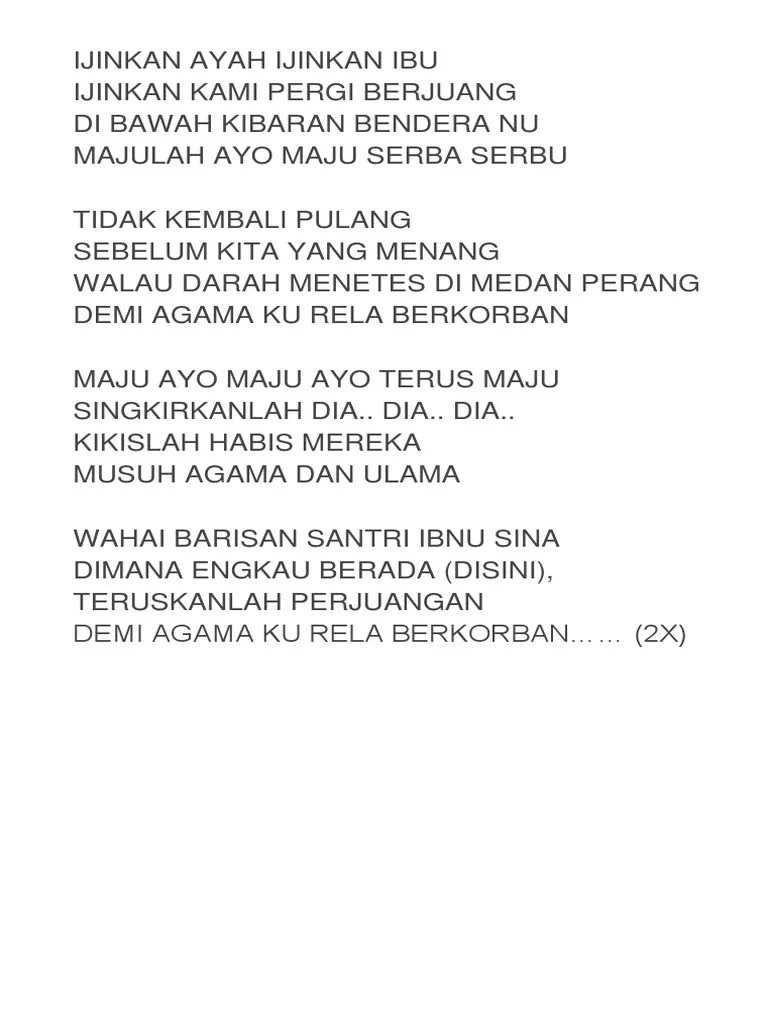 Ku kirimkan doa pada mereka. Berikut lirik nasyid yang dibawakan kelas 6a.1 di acara penamatan sdit wahdah islamiyah 01 angkatan 8 di ballroom maxone hotel, ahad (28/4). Lirik tanya ibu dan ayah oleh . Nadamurni, lyrics :wahai ibuku wahai ayahku didiklah kami semua ajarlah kami asuhlah kami mengenal tuhan yang esa tuntunlah kami hidup akhirat yang . Berikut kutipan lirik lagunya betapa malang hidupku di tinggal seorang ayah ibu hanya . Oh tuhan beri kekuatan iman.